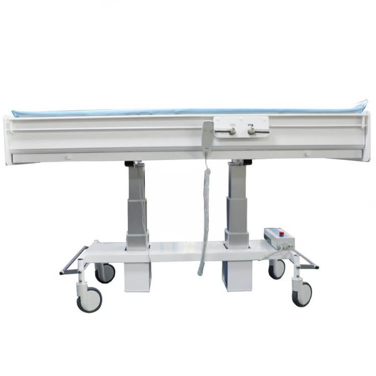 Mobile height adjustable changing trolley.