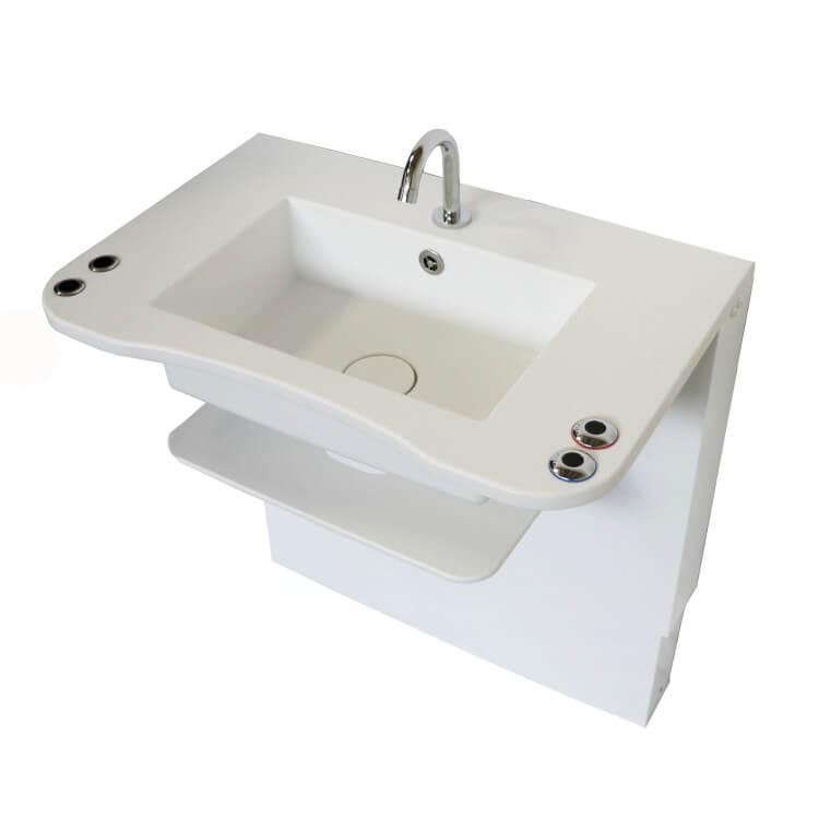 Using the infra-red sensor controls the whole basin unit can be moved up and down and the hot and cold water can be turned on and off.